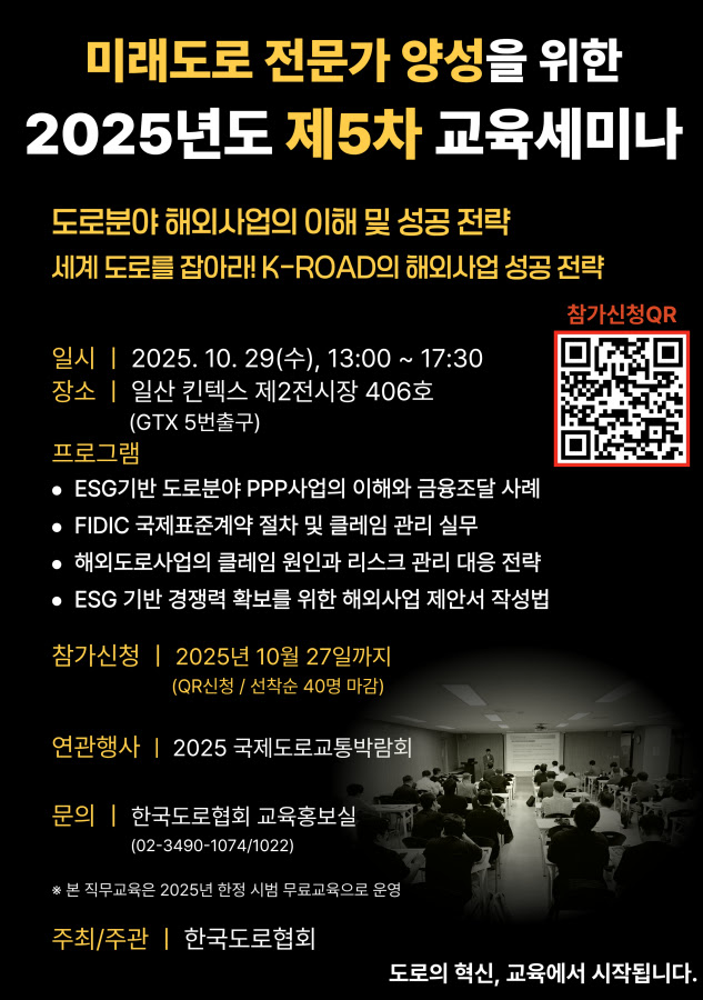 1. 행사명 : 미래도로 전문가 양성을 위한 ‘2025년도 제5차 교육세미나’