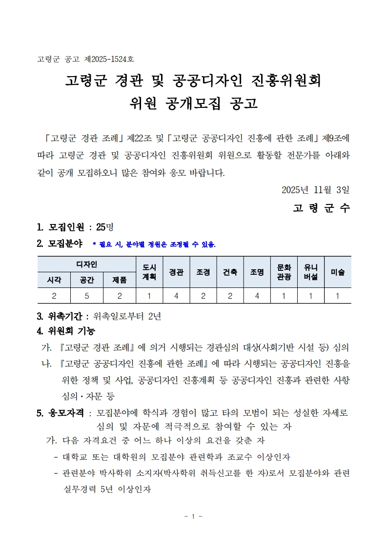 [고령군]『고령군 경관 및 공공디자인 진흥위원회』위원 공개모집 안내