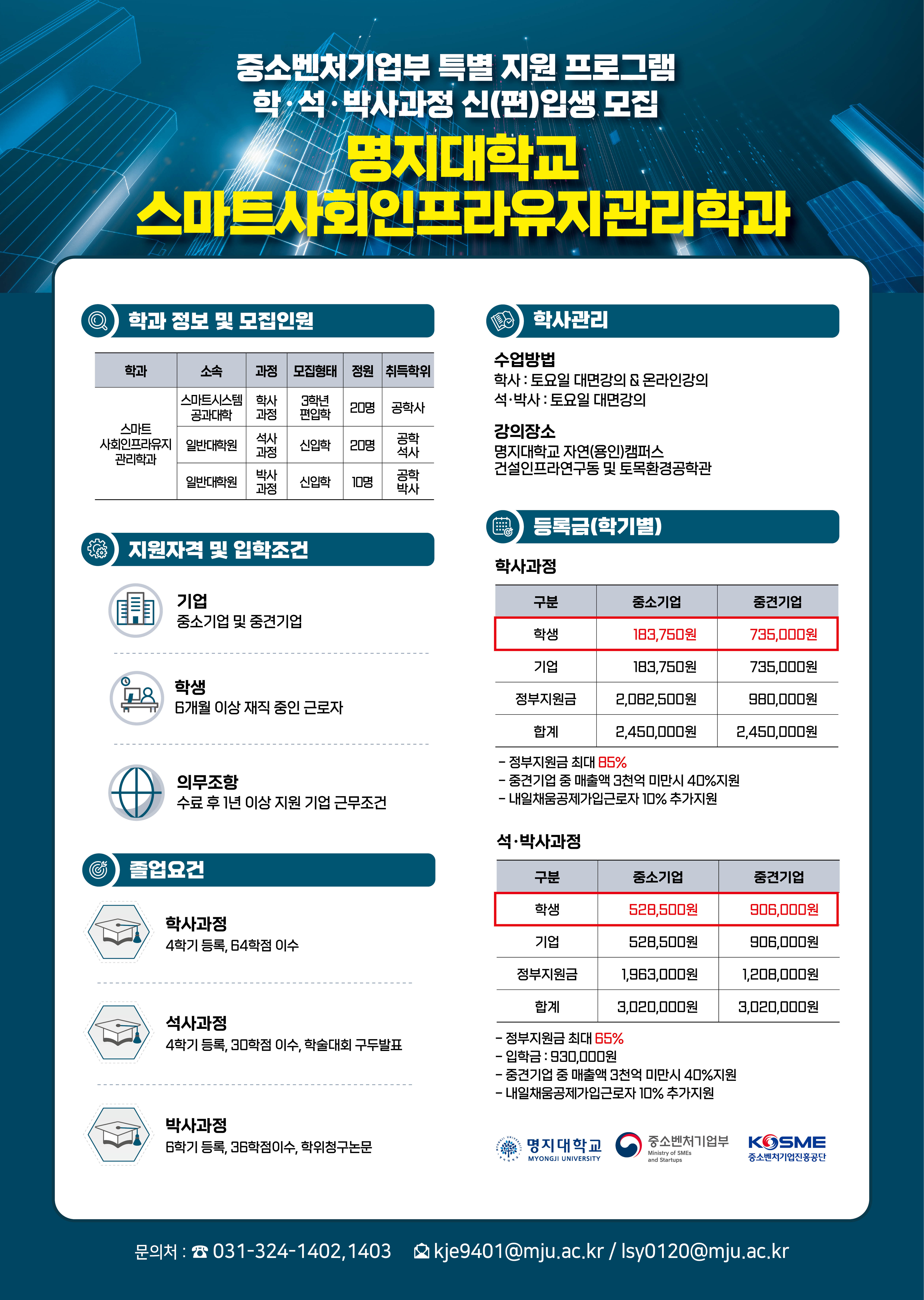[명지대학교 대학원 스마트사회인프라유지관리학과] 학사(편입)·석사·박사과정 신입생 모집