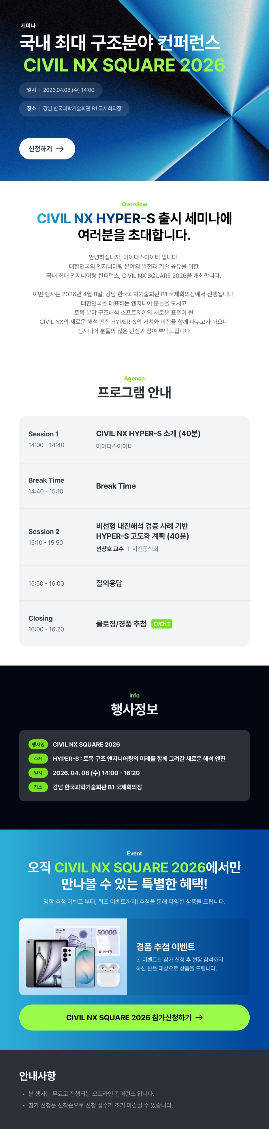 [마이다스아이티] 토목구조분야 범용 구조해석 소프트웨어 CIVIL NX 제품의 해석 솔버 출시 세미나